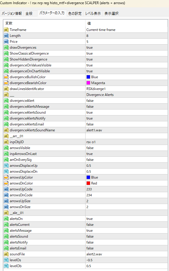 ダイバージェンスについては通常のレギュラー(クラシカル)ダイバージェンスとヒドゥンダイバージェンスの両方を認識し、設定でどちらか一方だけを表示することができます。