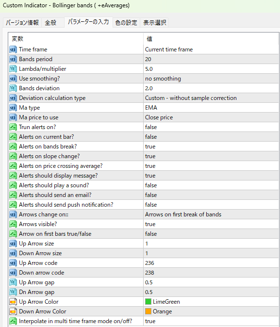 様々なMAでボリバンを表示し、ブレイクでサインを出す「Bollinger bands ( +eAverages)」