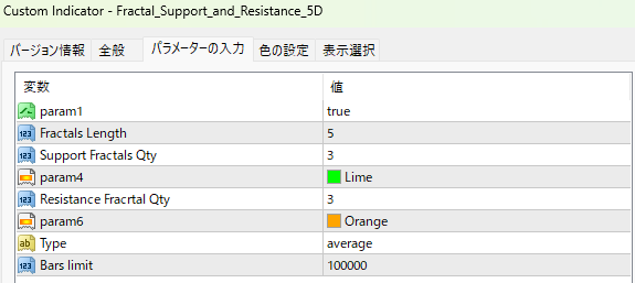 フラクタルの期間や反転回数についてはパラメーターで変更が可能ですので、好みに応じて変更すると良いでしょう。