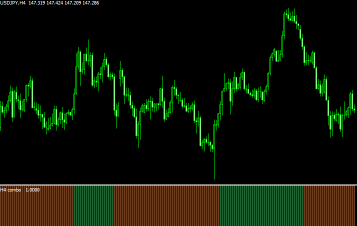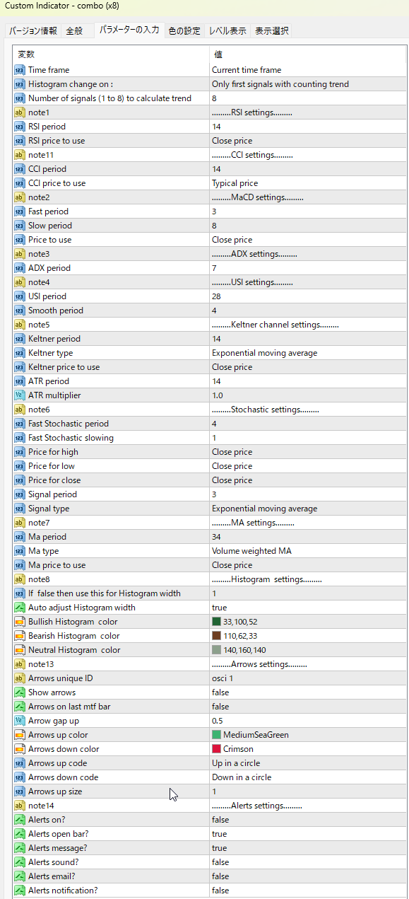 複数のインジケーターを統合して現在の流れをバーで示すインジです。