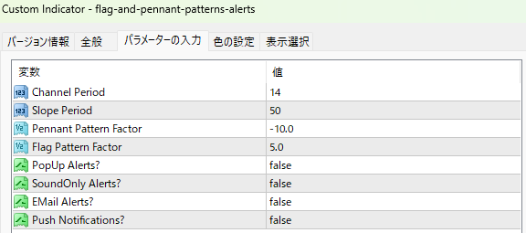 デフォルト設定では小さな値動きについてもパターン認識となりますが、設定で細かく変更が可能です。