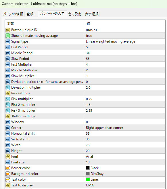 ultimate-maとそれをbb stop化したラインを表示するインジです。