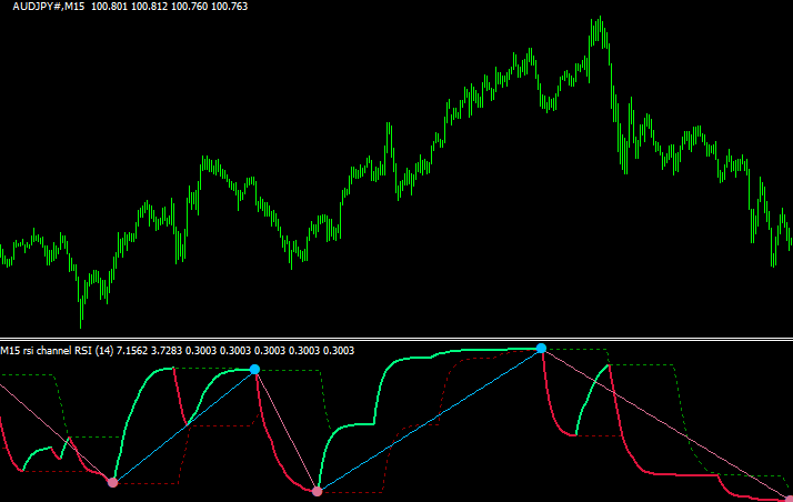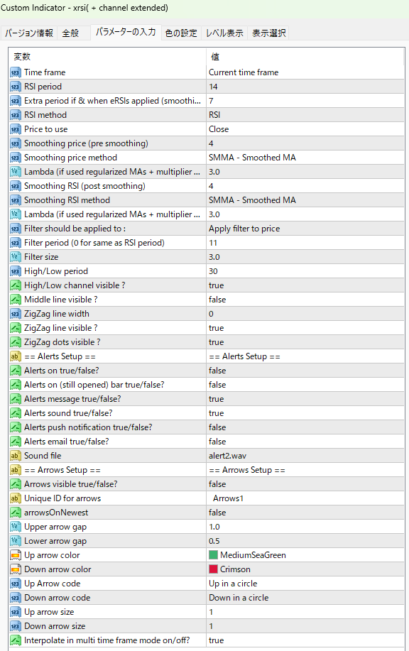 RSIにチャネルとジグザグを表示する「xrsi( + channel extended)」