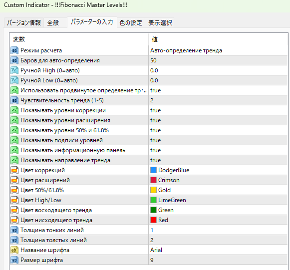 Показывать уровни коррекцииtrueリトレースメントを表示