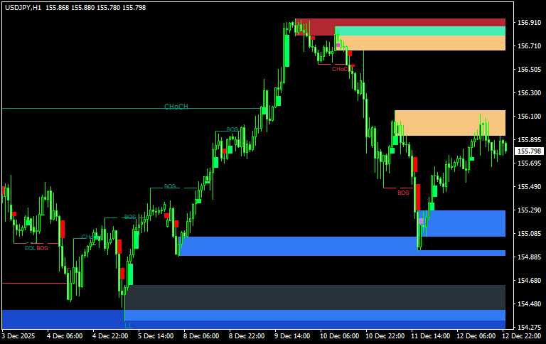 SMCに基づいてマーケットストラクチャーを表示するインジです。