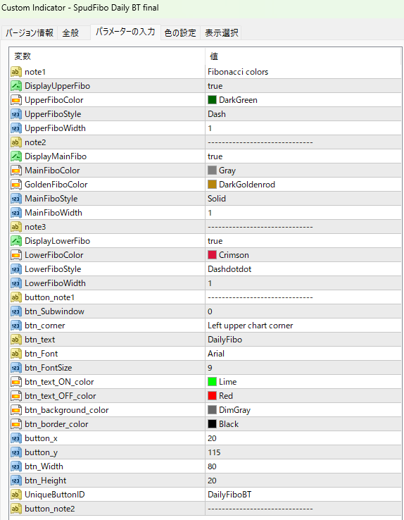 このインジでは、前日の日足のレンジを基準にして当日のフィボナッチラインを表示します。