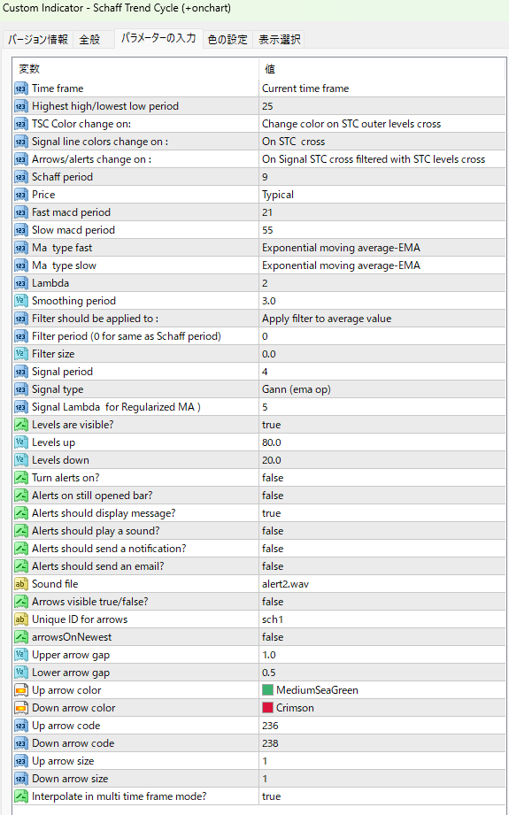 Schaff Trend Cycle(通称シャフ)をメインチャート上に表示するインジです。