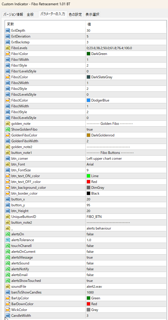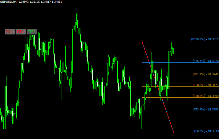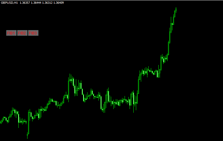 チャート上にFIB1~FIB3までのボタンが表示され、それぞれをクリックすることで各波についてのフィボナッチリトレイスメントが表示されます。