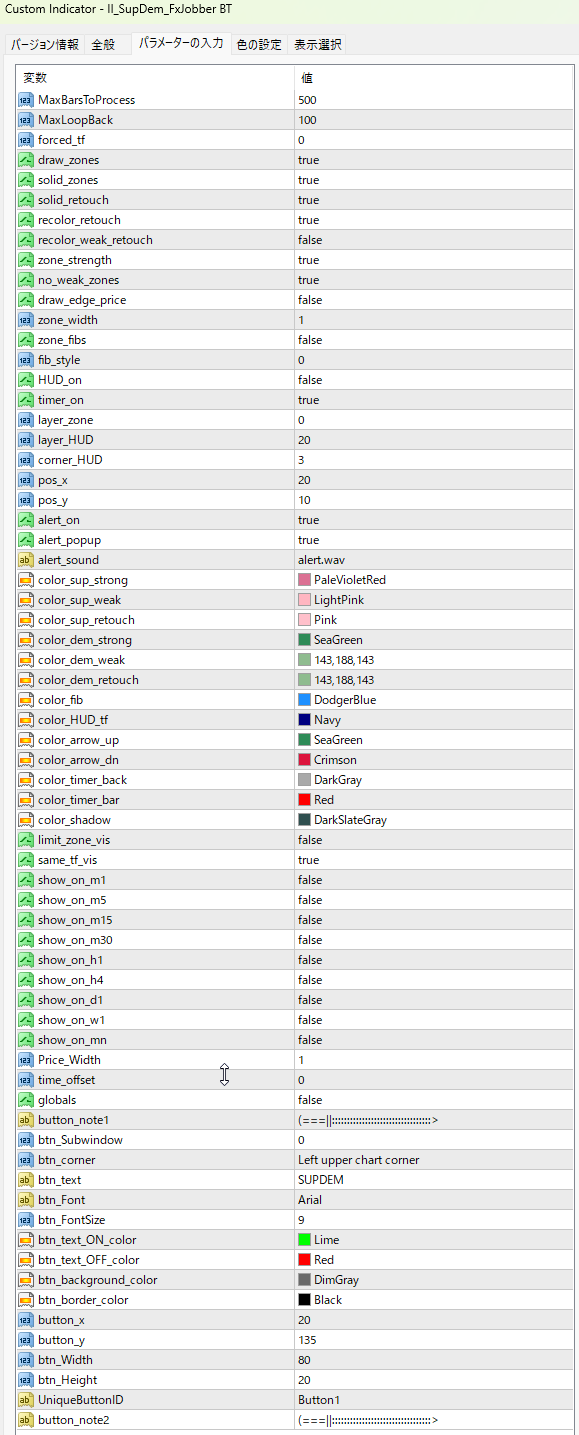 機能も充実しており、価格がゾーンに入ったらアラートが発動したり、チャート右下に現在の方向などを示すバーなども表示できます(HUDをtrue)。