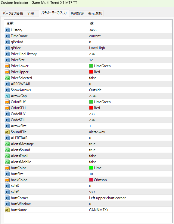 マルチタイム表示にも対応しており、上位足のGann Multi Trend も表示可能です。