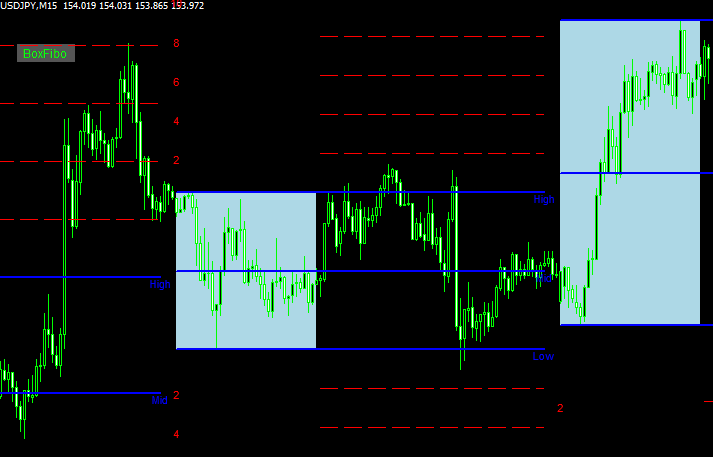 指定した時間帯をボックスで囲み、ラインを表示する「Bheki SDFibo」
