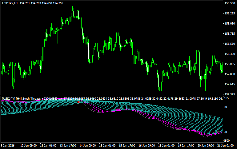 ストキャスティクス20本を一気に表示するインジです。