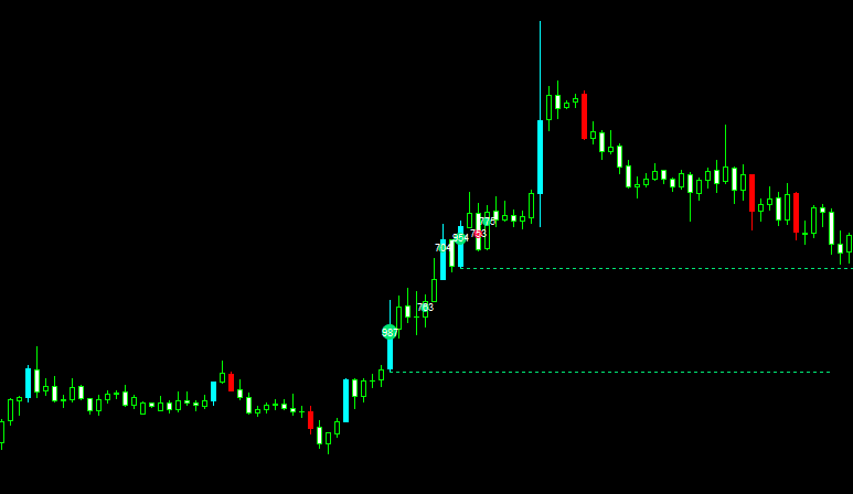 従来のテクニカル指標とは異なり、出来高の異常値(統計)と価格の動きの関係から、市場でで何が起きているかを分析するタイプのツールです。