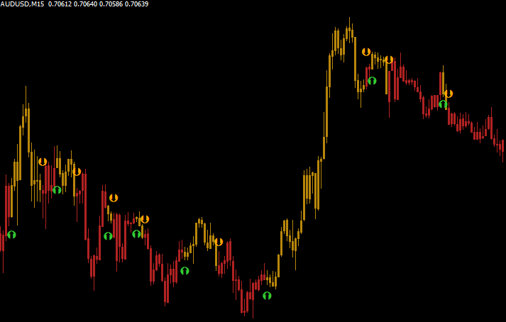 平均足スムーズドの示すトレンド方向をチャートの足の色に反映させるインジです。