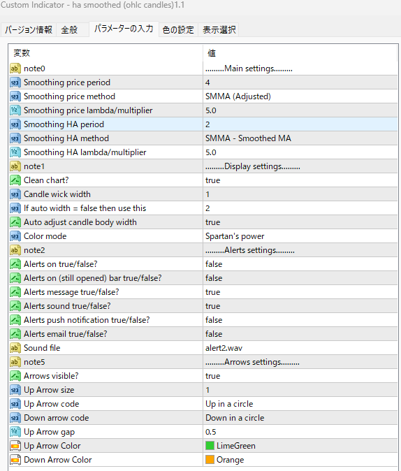 平均足スムーズドの平均化の計算方法にこだわりたい方にお勧めです。